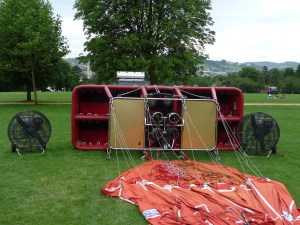 We arrived mid afternoon and while my husband watched, I joined my fellow balloonists as we went through the safety procedures and completed our forms. Next, we helped lay out the balloon on the ground, marvelling at the size of it, then, when all was ready, I clambered into the basket and assumed my crouching position as instructed, so that when the basket was righted, I would be sitting nicely in my place.