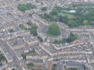 I admit it, I love to visit Bath! It is a beautiful Georgian city, with buildings of mellow stone with wide windows; home to the Roman baths, Sally Lunn buns and Jane Austen heroines and, though I have walked around most of it, I have never ever seen it from the air! So, for a recent “significant” birthday, this was where I set off on my birthday balloon flight with Virgin.